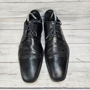 Broletto Black Italian Leather Cap Toe Oxford Lace Up Dress Shoes Men 10M Italy. Has heel wear and some toe scuffs. Please see pics for condition.