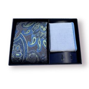 Broletto Geometric Design Blue Silk 2 Piece Tie, Pocket Square Like new