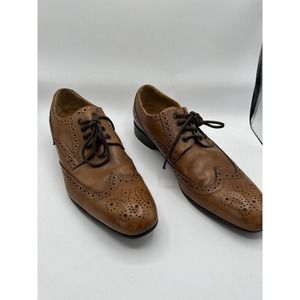 Broletto Shoes Men’s 11.5M Oxford Brogue Brown Leather Wing Tip Made In Italy