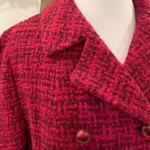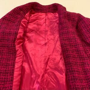 Absolutely stunning vintage coat in pink tweed! Union-made and amazing quality. No size or materials tags, but feels and looks like wool or a wool blend. Very heavyweight and warm. Accent buttons have the look of lucite. Fully-lined with a satiny material backed with what appears to be wool (see pic).