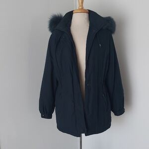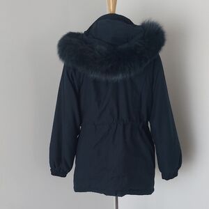 Experience ultimate warmth and style with this green puffer jacket, featuring a plush fur-trimmed hood and a quilted design. Its mid-thigh length and padded sleeves ensure comfort during chilly days, making it a perfect choice for winter wear.