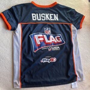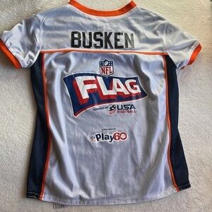 Introducing the Youth Medium NFL Denver Broncos Reverse Jersey! Show your team pride with this sleek and stylish jersey featuring the iconic Denver Broncos logo. Made with high-quality materials, this jersey is designed for ultimate comfort and durability. The unique reverse design allows you to switch up your game day look, with one side in vibrant blue and the other side in classic white. Perfect for young fans, this Youth Medium jersey is the perfect addition to any Broncos fan's collection. Get ready to cheer on your favorite team in style with this must-have NFL jersey!
