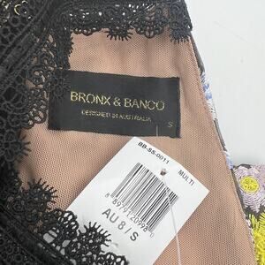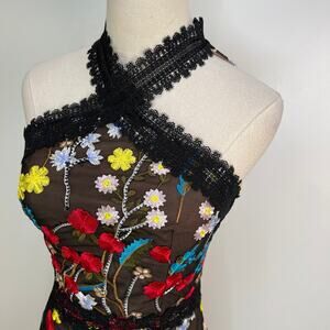 Bronx And Banco Ivana Side Ruffle Embroidered Dress Black Floral Midi Cocktail Party