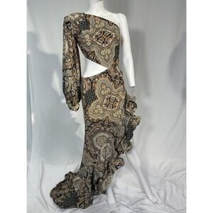 Bronx And Banco 'Paisley' Black Asymmetrical Gown Size S