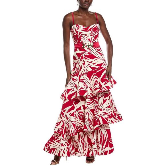 Color/pattern: armonia Approximately 60in from shoulder to hem Model is 5'9 and is wearing a size small. Measurements may vary slightly by size. Design details: layered skirt, sweetheart neckline, and adjustable shoulder straps Center back zip with hook-and-eye closure 60% polyester, 40% silk Lining: 95% polyester, 5% elastane Dry clean only Imported