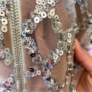 Bronx & Banco Afiyá x Coco Feather Sequin Midi Dress White Silver Size Large NWT