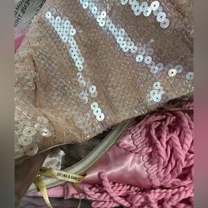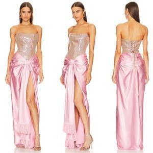 Bronx & Banco Pink Satin Strapless Sequin Tassel High Slit Gina Gown XS NWOT