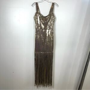 Bronx & Banco Revolve Cheri Gold Sequin Fringe Cocktail Gown / US XS