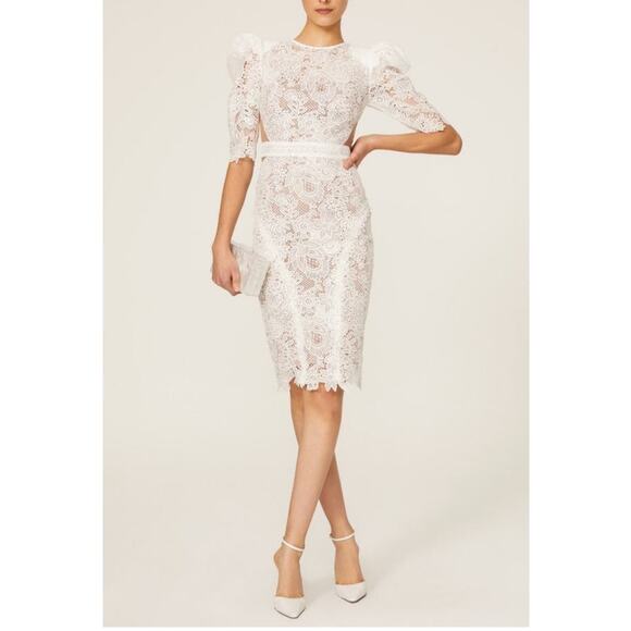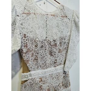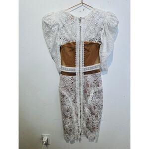 Bronx & Banco White Embroidered Lace Back Cutouts Madeline Lace Bride Dress XS