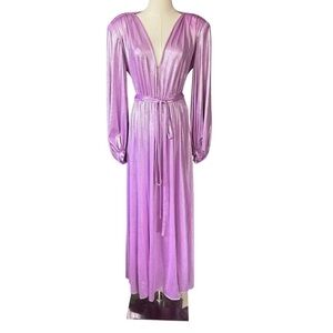 This waist-cinching lilac lame dress by Bronx and Banco beautifully accentuates the figure. This Goddess gown is incredibly beautiful.