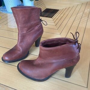 Bronx Brown Leather Ankle Booties convertible heeled boots lace up EU 37 sz 6