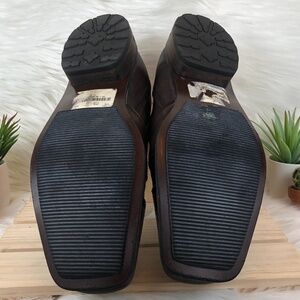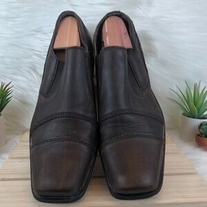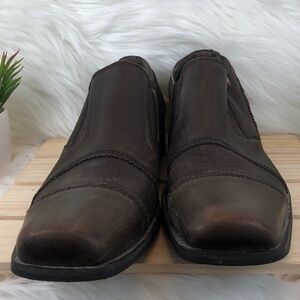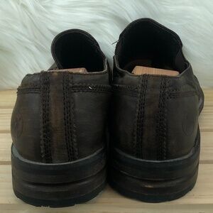 Bronx Burnished Leather Cap Toe Slip Ons Brown. Pre-loved condition. Normal wear. Manufacture distressed brown leather, cap toe slip ons.