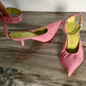 Bronx Pointy Toe Elasticized Kitten Heel Pumps Ankle Strap Pink