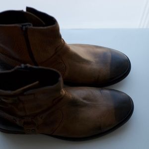 These boots have a natural distressed/worn look. Lightly worn, great for any occasion.