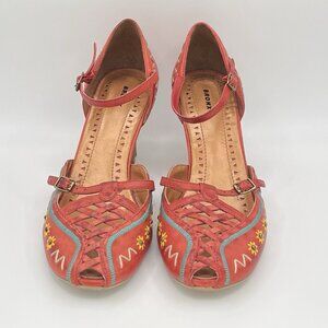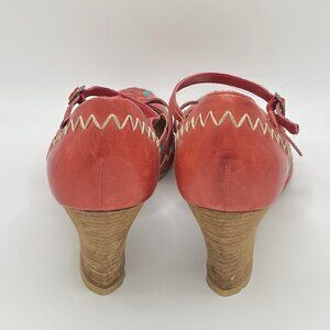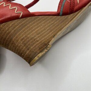 Bronx Women’s Red Leather Wedge Sandals Size 37 EU, US 6.5-7 Embroidered Brazil