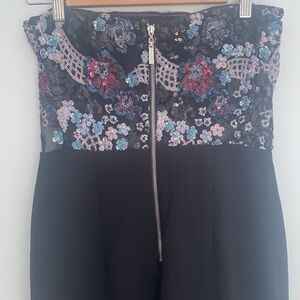 Please note belt not included. Straps have been removed for a strapless jumpsuit look. Other than that item is EUC