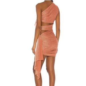 Stylish one-shoulder dress with cutout details. Features a vibrant orange color. Perfect for a night out.