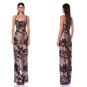 Bronx and Banco Dahlia Leona Embroidered Gown in Silver Multi Size 6 NEW! NWT!