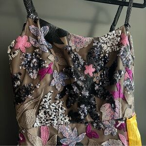Bronx and Banco Dahlia Leona Embroidered Gown in Silver Multi Size 6 / Medium NEW! New with tags! Elegant floral embroidered maxi dress featuring a stunning blend of colors. Perfect for special occasions. Self: 100% polyester Lining: 95% polyester, 5% elastane Made in China Dry clean Partially lined Back zipper closure Adjustable shoulder straps Sequin embellished fabric Revolve Style No. BROR-WD698 Manufacturer Style No. BB-20-016