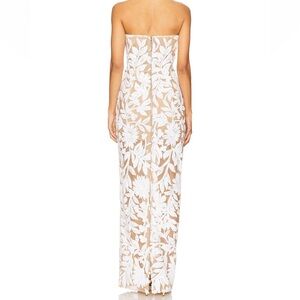 Elegant strapless maxi dress with intricate floral sequin design. Perfect for special occasions and wedding reception / after party.