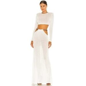 Bronx and Banco Women's Cutout Sheer Dalia Two Piece Knit Skirt Set White Size S