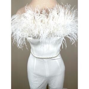 Bronx and Banco Lola Blanc Feather Strapless White Jumpsuit Size XS