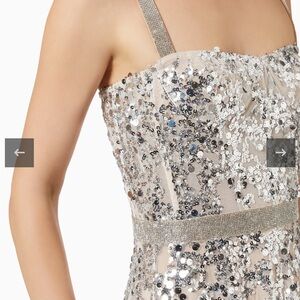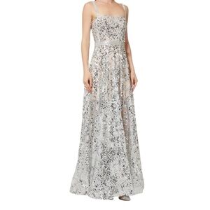 BRONX AND BANCO Midnight Gown Sequin Sheer White Silver Sleeveless Size XS