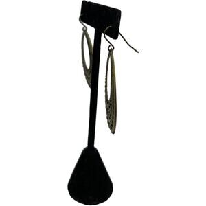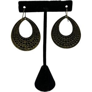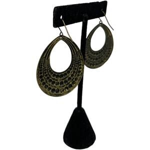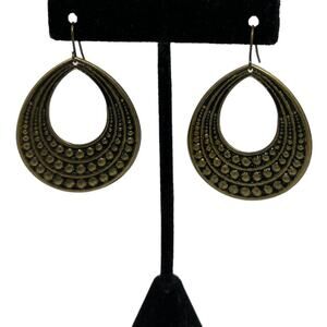 Make a bold statement with these striking bronze-tone crescent hoop earrings. Each earring features an intricate dotted pattern arranged in graduated concentric crescents, creating a beautiful dimensional effect. The open teardrop/crescent shape showcases traditional tribal-inspired design elements with a modern bohemian twist. These substantial yet lightweight earrings are crafted in an antiqued bronze finish that adds a rich, vintage-inspired warmth to the piece.