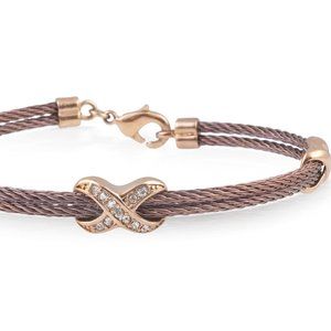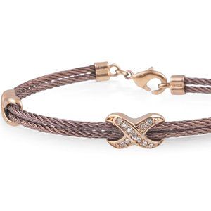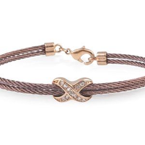 Bronze Cable Bracelet With Rose Plated Stainless Steel Accents