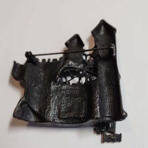 Unique bronze castle brooch featuring a spider web and keys. Perfect for adding a touch of mystery to any outfit.