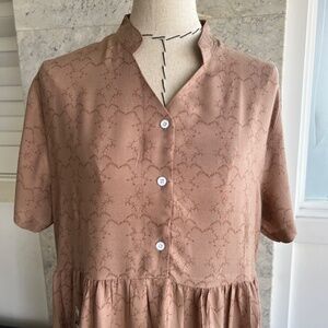 Bronze Color Button Front Dress, Mandarin Collar Dress