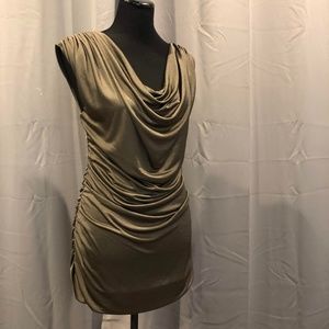 Incredibly classy looking tunic. Stretch poly-silk, it's incredibly flattering with a pair of leggings or jeans.