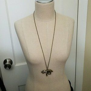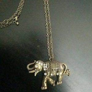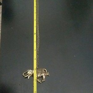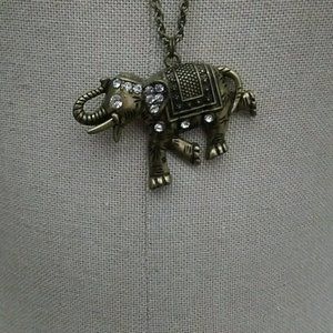 Excellent condition long antique bronze metal necklace. Embellished elephant with jewels.
