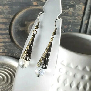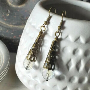 Bronze Faceted Crystal Clear Luster Antiqued Filigree Teardrop Earrings