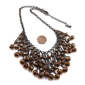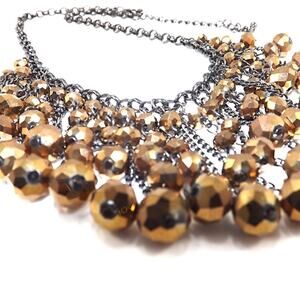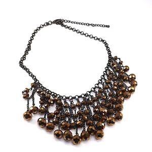 Bronze Faceted Czech Crystal Beaded Fringe Bib Necklace, 19 Inches