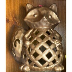 Add a charming touch to your home decor with this bronze finish ceramic raccoon candle holder, ideal for creating a cozy ambiance.