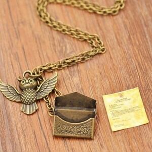 Wish you had gotten your Hogwarts letter when you were 11? Well now you can have the next best thing! This necklace is bronze colored, with an owl charm encircling the two sides of the chain with an envelope hanging below. And surprise! Inside the metal flower covered envelope is your very own mini printed Hogwarts acceptance letter!