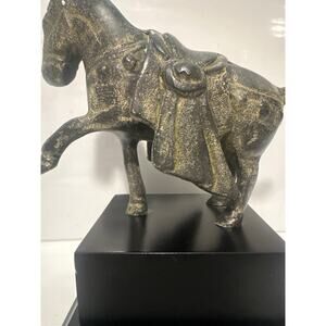 Bronze Horse bookend Statue Art Piece San Francisco Bay Trading Patina Wood Base