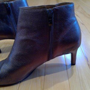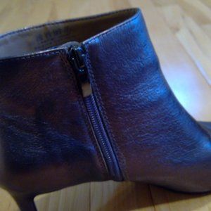 Franco SArto Bronze Metallis Booties. Coloe from photo is not coming through as I'd like so the best way to describe is a dark goldish bronze metallic, There are 2 discolorations as shown in photo. One by zipper on left shoe, this is hidden because it is on the inside of the foot when you are wearing and not noticible, the other is a small discoloration near the sole. You will not notics these when worn, I have been wearing, and was told it is not noticeable. These are also soft and supple, very cute with jeans, pants or dresses and skirts. I am not discounting further only because these are very unique, and the flaws are barely noticeable. You are getting a grerat deal for the uniqueness of this item