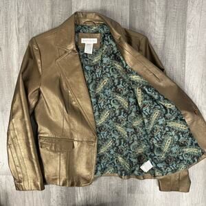 Bronze Metallic Leather Blazer Jacket One Button Size Medium