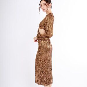 Bronze Midi Cut out Metallic Holiday Dress from Endless Blu Size S