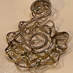 Pendant is Swirl in Design measures 1 7/8" X 1 7/8" with cz detail through out