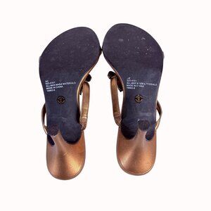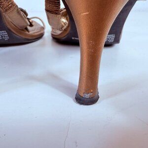Bronze Strappy Sandals Peacock Rhinestone Accents Kitten Heels Size 8 By MixIt