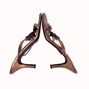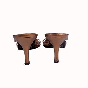 Glam Bronze Strappy Sandals Peacock Rhinestone Accents Slip On Kitten Heels Size 8 By Mix It