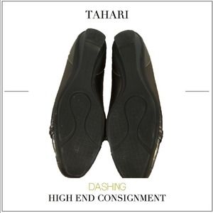 These Tahari Brand New Bronzed Colored Flats New Without Tags are Gorgeous and Comfy! The heel is ~1/2" high and are rubber soles. Size 7 1/2M.