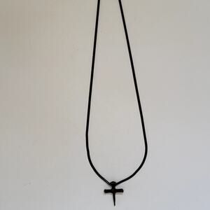 This bronze-tone pendant necklace features a bold cross design crafted to resemble forged nails tied together, symbolizing strength, faith, and resilience. The rustic, antique-style finish gives the piece a rugged, handcrafted look, making it both meaningful and stylish. The pendant measures approximately 1.5 inches in length and hangs from a sturdy matching bronze-tone chain, designed for durability and everyday wear. Perfect as a Christian faith necklace, spiritual gift, or statement piece for someone who appreciates symbolic jewelry with a unique design. Its timeless and unisex appeal makes it suitable for men or women, whether worn daily or on special occasions. This necklace pairs easily with casual outfits or layered with other chains for a more modern look. Ideal as a thoughtful religious gift, baptism keepsake, or personal faith reminder. In very good condition with minimal wear, ready to wear or gift.