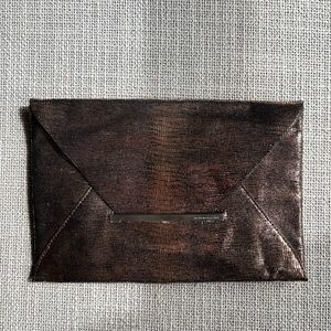 BCBGMaxAzria bronze and black envelope clutch | faux snake print, pockets for cards inside. Very cute and goes with everything.