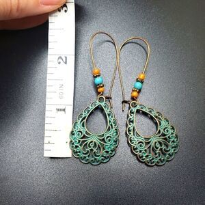 Bronze filigree earrings turquoise boho beaded drop wire design