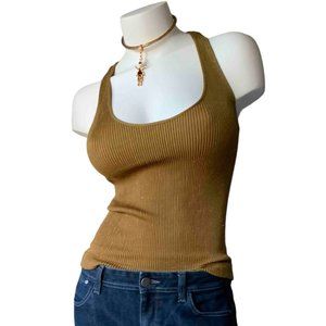 Bronze lightweight ribbed neutral pullover knit racer back sweater - size S