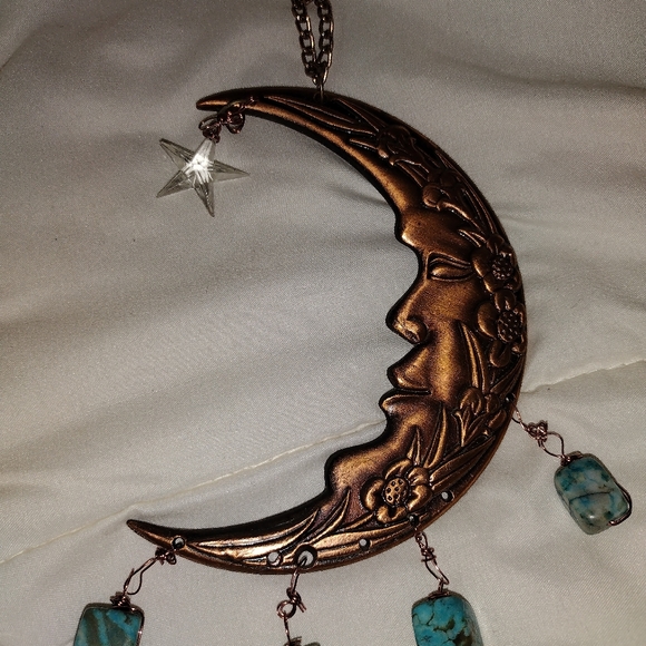 hanging bronze moon homemade with turquoise